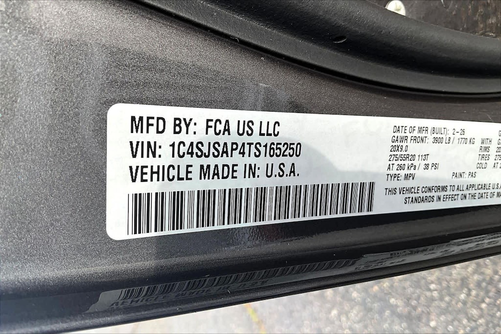- 1C4SJSAP4TS165250